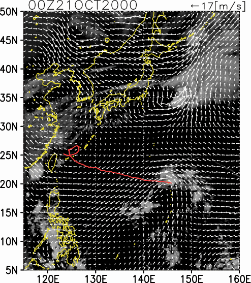 気象の状況10月21日にマリアナ諸島の北海上で発生し、24日に宮古島の南東海上で強い勢力になった。25日に宮古島と石垣島の間を通過し、26~28日にかけて宮古島の北の海上で時計回りに一回転しながら勢力を弱め、27日に同海域で熱帯低気圧になった。半壊・一部破損4棟(情報元:気象要覧第1214号)。 |