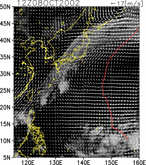 気象の状況10月8日にエニウェトク島の西海上で発生した熱帯低気圧は、発達しながら北西へ進み、10日にグアム島の東海上で大型の台風になった。12日に最も勢力を強めて、南鳥島の西南西を通過後、勢力を弱めながら北へ進み、14日に父島の北東海上で温帯低気圧に変わった。 |