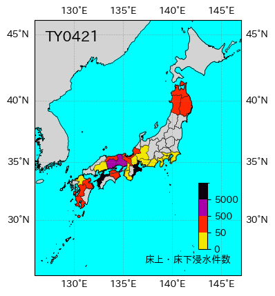 | 都道府県 | 死者・不明者 | 負傷者 | 全壊 | 半壊 | 一部破損 | 床上浸水 | 床下浸水 | 非住家 | 情報元 |