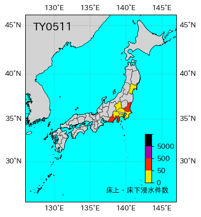 | 都道府県 | 死者・不明者 | 負傷者 | 全壊 | 半壊 | 一部破損 | 床上浸水 | 床下浸水 | 非住家 | 情報元 |