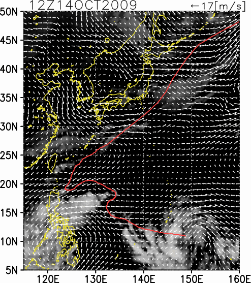 気象の状況10月16日にフィリピンの東海で発生し、24日から26日にかけて沖縄県の南東を通過した。その後、日本の南海上を北東に進み、27日に北海道の東海上で温帯低気圧に変わった。 |