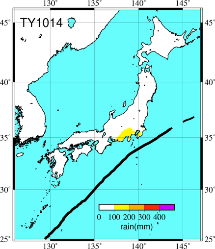 気象の状況10月24日にフィリピンの東で発生し、28日には沖縄地方、29日には奄美地方の東海上を北東に進んだ。30日には四国沖から紀伊半島沖、房総半島沖に進み、日本の東海上で温帯低気圧に変わった。 |