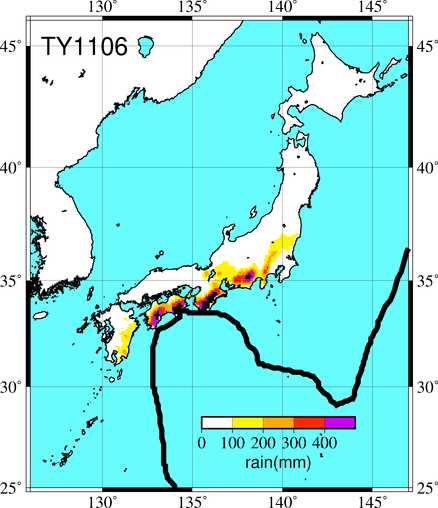 気象の状況7月12日に南鳥島近海で発生し、18日には南大東島の北東海上を北に進み、19日には足摺岬の南を北に進み、高知県付近の海上を北東に進んだ。20日に徳島県南部に上陸した後東に進み、和歌山県潮岬付近を通過し、東海道沖を南東に進んだ。21日には伊豆諸島・八丈島の西から鳥島の東に進み、22日には鳥島の東南沖で進行方向を北東に変え、24日には三陸沖で温帯低気圧になった。死者・行方不明3人、負傷者54人、半壊1棟、一部破損31棟、床上浸水28棟、床下浸水122棟(情報元:消防庁)。 |