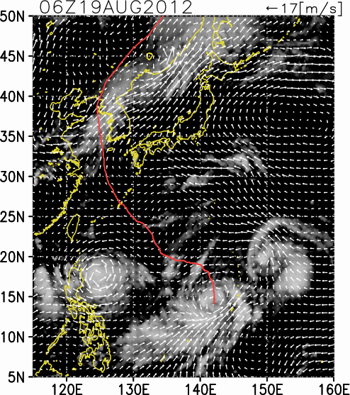 気象の状況8月20日にマリアナ諸島沖で発生し、25日には南大東島の南海上を北北西に進み、26日には沖縄本島を通過し、東シナ海を北西に進んだ。28日には黄海を北上し、29日には温帯低気圧に変わった。 |