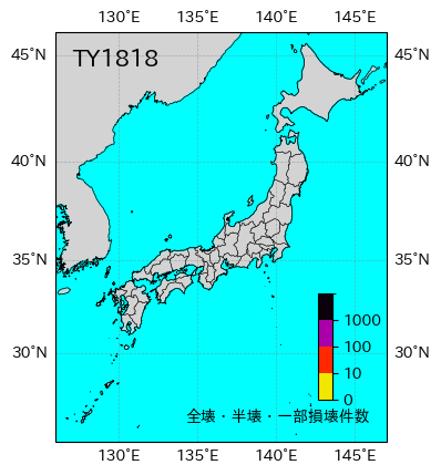 | 都道府県 | 死者・不明者 | 負傷者 | 全壊 | 半壊 | 一部破損 | 床上浸水 | 床下浸水 | 非住家 | 情報元 |