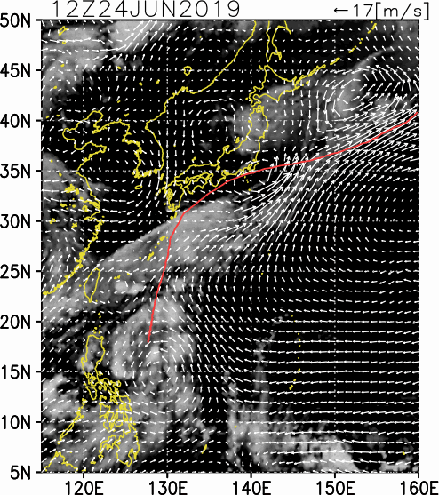 台風および前線に向かって暖湿気が流入し、西日本太平洋側で激しい雨。