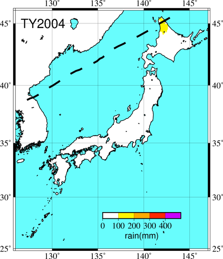 気象の状況八重山地方を暴風域に巻き込みながら北西に進み、中国大陸に上陸後、黄海、朝鮮半島を通過し、日本海で温帯低気圧に。その後、再発達しながら北海道に接近した。暴風の影響で石垣島では停電が発生した。また、利尻町や利尻富士町、稚内市などに「土砂災害警戒情報」がダ出され、利尻島では50年に1度の記録的大雨となった。 |