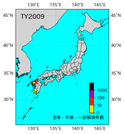 | 都道府県 | 死者・不明者 | 負傷者 | 全壊 | 半壊 | 一部破損 | 床上浸水 | 床下浸水 | 非住家 | 情報元 |