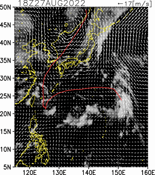 気象の状況太平洋高気圧に北上を阻まれ西進しながら発達、先島諸島で停滞後、東シナ海、日本海を北上。 |