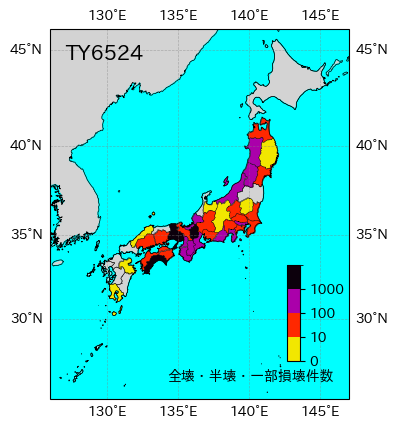 | 都道府県 | 死者・不明者 | 負傷者 | 全壊 | 半壊 | 一部破損 | 床上浸水 | 床下浸水 | 非住家 | 情報元 |