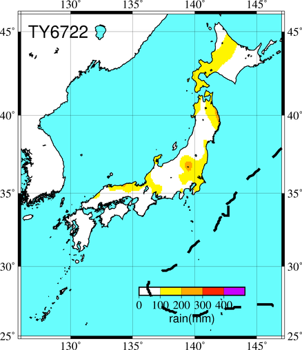 8月29日9時,ウェーク島の南東およを580kmの北緯15.0度,東経170.0度に発生した熱帯低気圧は,北西へ進み,30日9時同島の南東およそ400kmの海上,北緯16.1度,東経168.8度に達して台風となった。 台風はその後も北西に進み,同島に接近した9月1日9時頃から進路を西北西に変えた。台風は9月4日以後,北よりの成分をましながら北西に進み,7日21時には父島の東およそ450kmの海上に達して,このころから進路を西南西に変えた。 台風は,11日9時に父島の西方およそ400kmの海上,北緯27.0度,東経137.5度付近でゆっくりとした速度となって北西に向きを変え,12日15時ごろ転向点に達した。台風は,この台風の東北東およそ1200kmの海上にある台風第25号と,日本の東方およそ1800km付近にある台風第24号の3つが互いに干渉しあったとみられる複雑な動きを示した。台風第22号は,北東へ転向後13日夜半頃鳥島の北およそ110km付近を通り,15日3時には八丈島の東方で進路を南に変え,右回りの小さなループを描いて再び北東へ進み,17日15時に千島のウルップ島の南およそ600kmの海上,北緯39.9度,東経150.0度で温帯低気圧となった。台風発生時の中心気圧998hPa。9月4日9時にもっとも発達して,中心気圧920hPa,中心付近の最大風速70m/s,25m/s以上の暴風半径は200kmとなった。