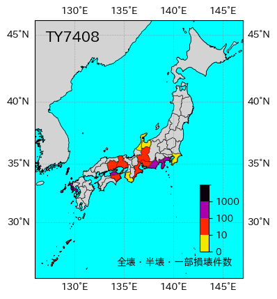 | 都道府県 | 死者・不明者 | 負傷者 | 全壊 | 半壊 | 一部破損 | 床上浸水 | 床下浸水 | 非住家 | 情報元 |