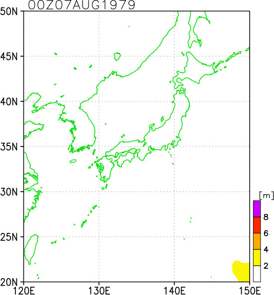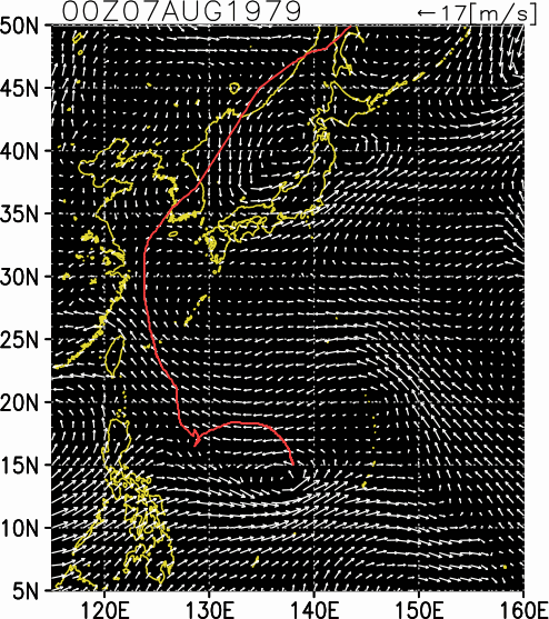 気象の状況8月7日朝マリアナ諸島の西方海上で発生した台風は、14日遅く石垣島と宮古島との間を通って東シナ海に進んだ。台風はその後、17日に朝鮮半島南西部に上陸して温帯低気圧となった。死者4人、負傷者4人、浸水1290棟(気象要覧第960号)。 |