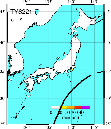 気象の状況父島の西方海上を北上し、8日に八丈島の南東海上を通り、その後三陸東方海上を北東進し、温帯低気圧となった。死者・行方不明7人、負傷者6人、全壊・流失8棟、半壊・一部破損30棟、床上浸水1棟、床下浸水4棟(情報元:気象要覧第998号)。 |