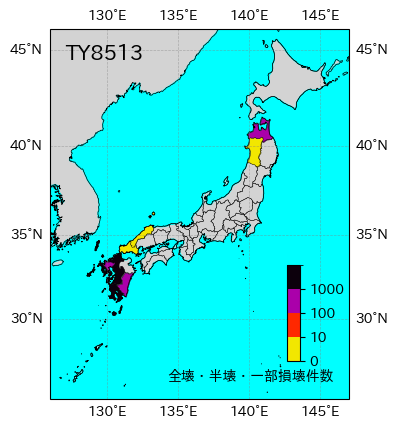 | 青森県 | 24 | 1 | 129 | 5 | 72 | 青森県「昭和60年災害による被害」 | |||
