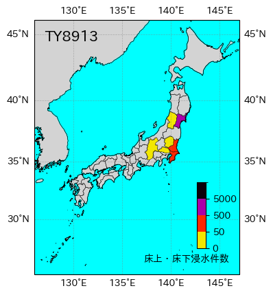 | 都道府県 | 死者・不明者 | 負傷者 | 全壊 | 半壊 | 一部破損 | 床上浸水 | 床下浸水 | 非住家 | 情報元 |