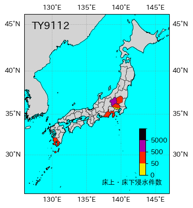 | 都道府県 | 死者・不明者 | 負傷者 | 全壊 | 半壊 | 一部破損 | 床上浸水 | 床下浸水 | 非住家 | 情報元 |