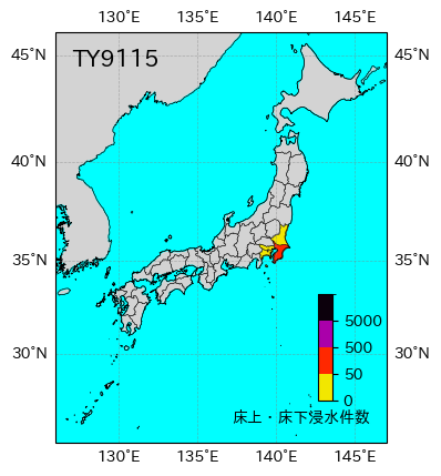 | 都道府県 | 死者・不明者 | 負傷者 | 全壊 | 半壊 | 一部破損 | 床上浸水 | 床下浸水 | 非住家 | 情報元 |