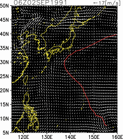 気象の状況9月2日にトラック島の東で発生し、7日には大型で非常に強い勢力まで発達して、父島の南西海上を通過した。9日には徐々に勢力を弱めながら八丈島の南海上に達した後、速度を速めながら日本から遠ざかった。死者6人、負傷者4人、全壊・流失4棟、半壊・一部破損73棟、床上浸水187棟、床下浸水1318棟(情報元:気象要覧第1105号)。 |