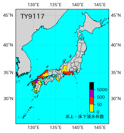 | 鹿児島県 | 6 | 11 | 736 | 6 | 279 | 阿久根市、鹿児島県「平成3年災害の記録」 | |||