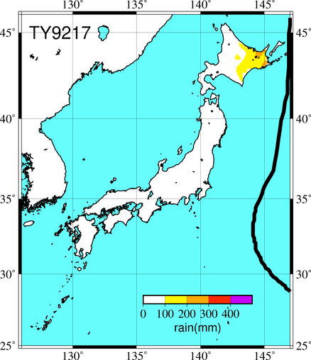 気象の状況9月1日に南鳥島の南海上で発生し、10〜11日にかけて日本の東海上を通って、大型の強い勢力で千島近海を通過してオホーツク海に達した。 |