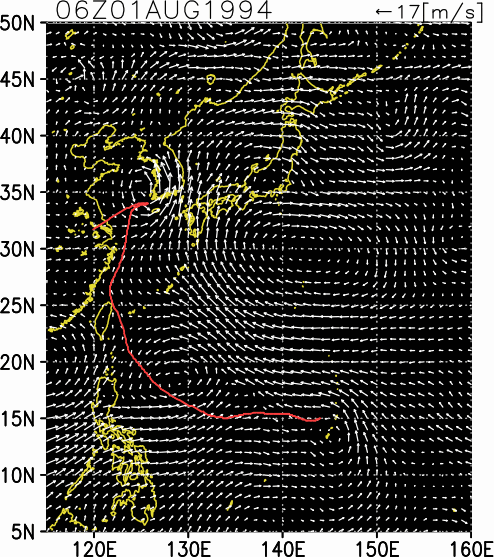 気象の状況8月1日にマリアナ諸島の西海上で発生し、5日には大型で非常に強い勢力となり、8日には与那国島の西海上を経て東シナ海を北上した。全壊・流失19棟、半壊・一部破損552棟(情報元:気象要覧第1140号)。 |