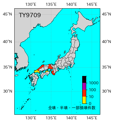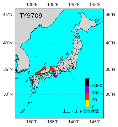 | 都道府県 | 死者・不明者 | 負傷者 | 全壊 | 半壊 | 一部破損 | 床上浸水 | 床下浸水 | 非住家 | 情報元 |