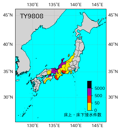 | 都道府県 | 死者・不明者 | 負傷者 | 全壊 | 半壊 | 一部破損 | 床上浸水 | 床下浸水 | 非住家 | 情報元 |